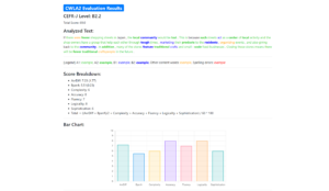 (注2):10語から800語までのテキストを入力すれば、英語学習者の語学レベル(CEFR-J:preA1、A1.1、A1.2、A1.3、A2.1、A2.2、B1.1、B1.2、B2.1、B2.2、C1、C2)を推定します。、主に高校レベルの作文を対象としています。2025年の九大二次試験 英作文の模範解答を入力すると、レベルはB2(英検準1級レベル)、自然な英語表現のアドバイス・文法上の誤りを4か所指摘していました。